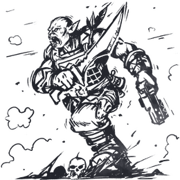 Orc Marauders are hulking humanoid aliens, whose society is divided into a number of warring clans and bands. Orc Marauders lack precision weapons or heavy armour and instead rely on their fast vehicles, large numbers and ferocity to defeat their foes.